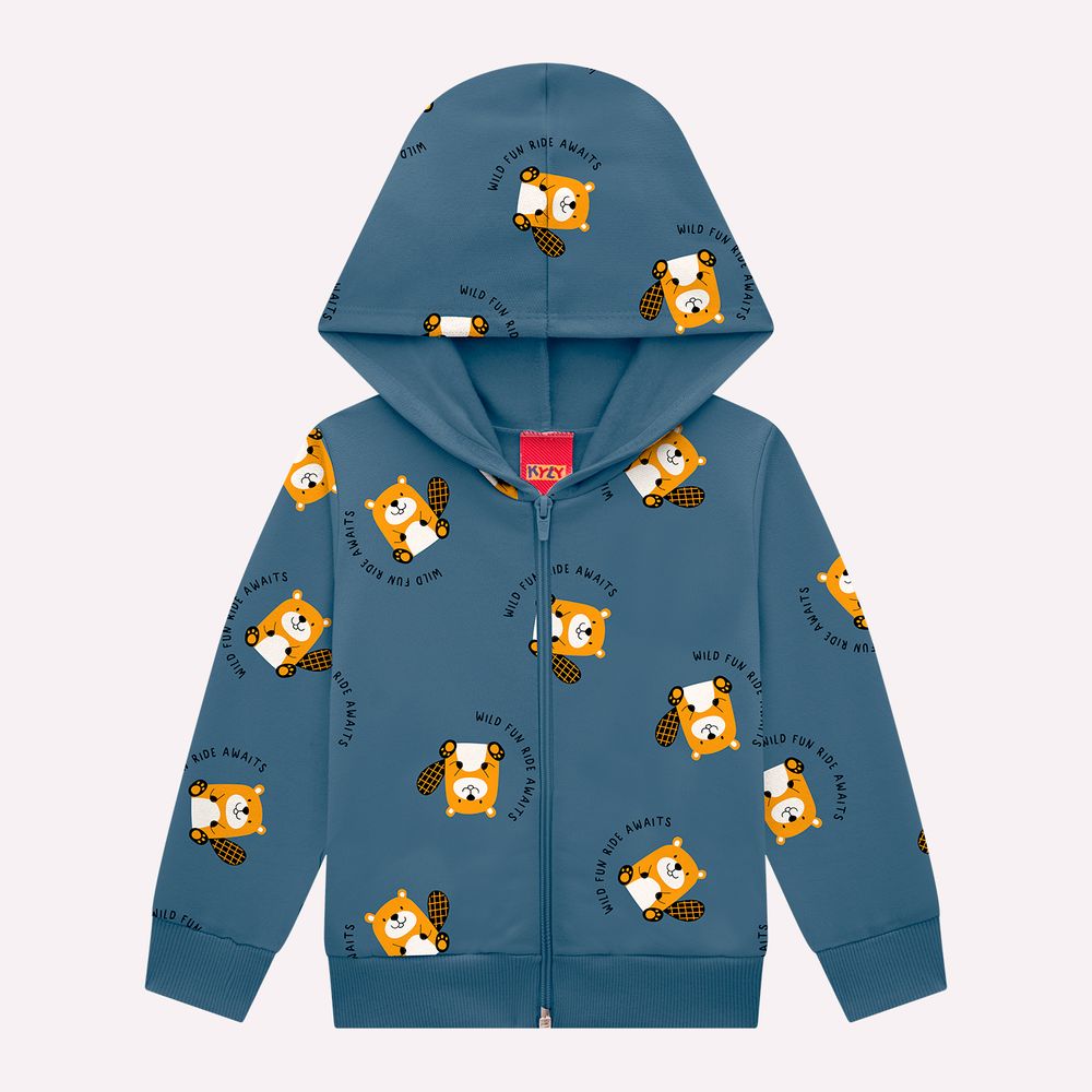 The jacket is the highlight of the ensemble, with a fun beaver print that adds a playful and charming touch to the look. The built-in hood offers extra protection against wind and cold, while the front zipper closure makes it easy to put on, bringing practicality to everyday wear. The comfortable fit and cuffed finishes ensure a flawless and secure fit. - Their elastic waistband pants provides a perfect fit for your child's body, allowing complete freedom of movement. A detail that makes all the difference is the visible piping on the side of the piece, which adds a modern, sporty touch, elevating the look
