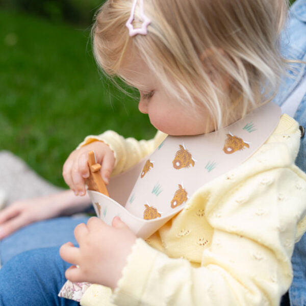Ziggle Catch It Silicone Bib Highland Cow Beige