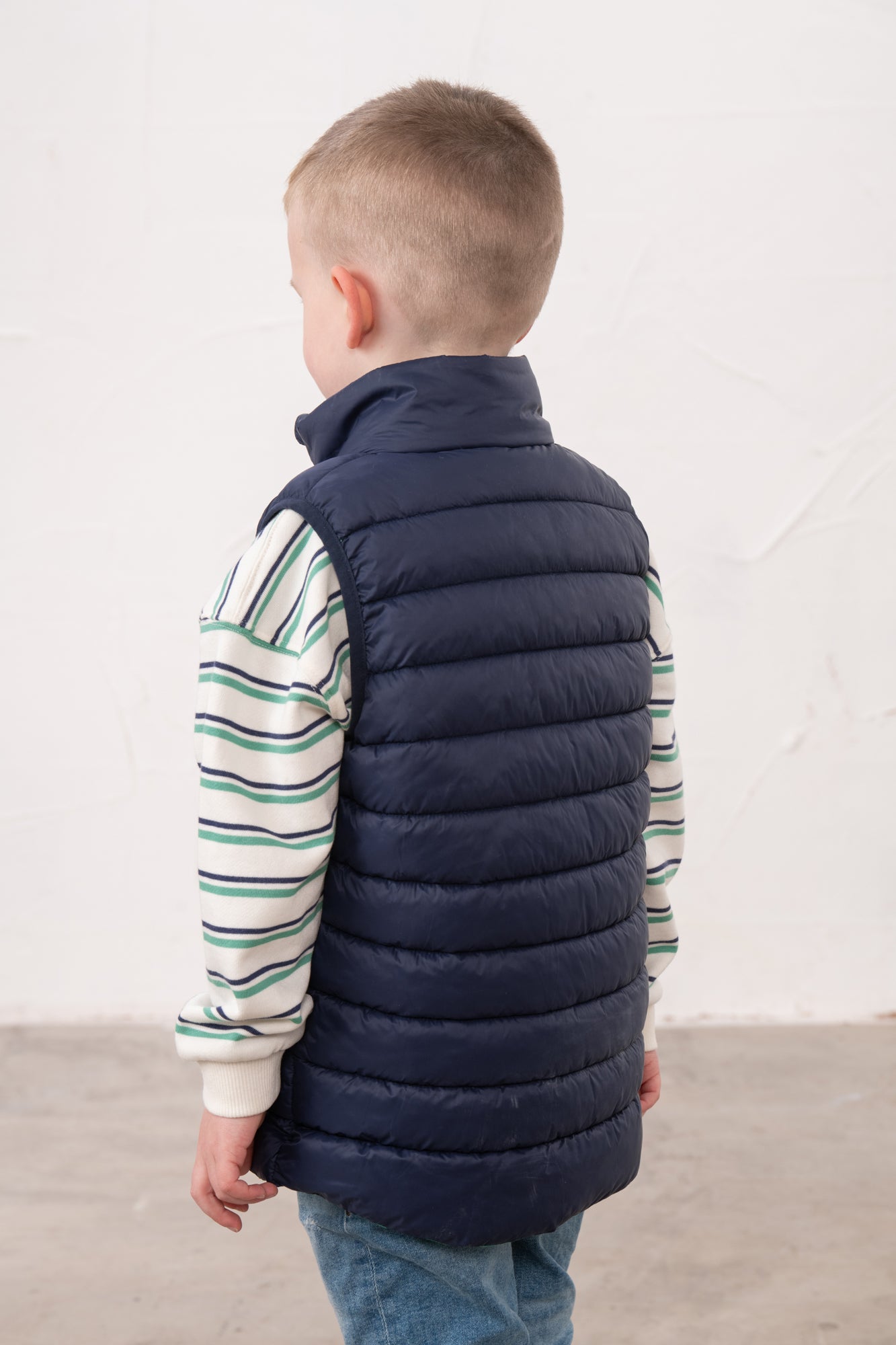 Featuring a vibrant navy colour with a contrasting inner lining, this gilet is as practical as it is eye-catching. Two front pockets provide handy storage for essentials or a place to keep little hands warm. Whether it's worn over a cosy hoodie or under a winter coat, this versatile gilet is ideal for year-round wear.