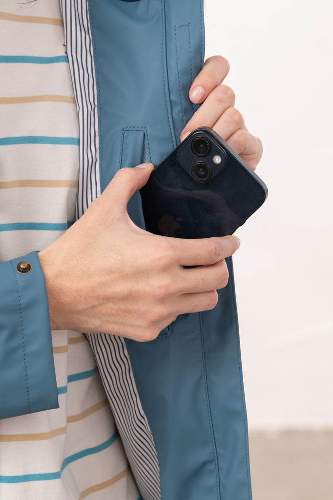 Stay stylish and dry during summer showers with the Lucy jacket, designed for those who prefer a shorter fit. Featuring a waterproof, breathable, and windproof rubberised outer, it ensures reliable protection when any drizzle appears. The soft cotton-blend lining provides comfort, making it the perfect choice for commutes, trips, or shopping. Practicality meets style with two spacious front pockets and a secure internal zipped pocket to keep your phone safe and accessible.