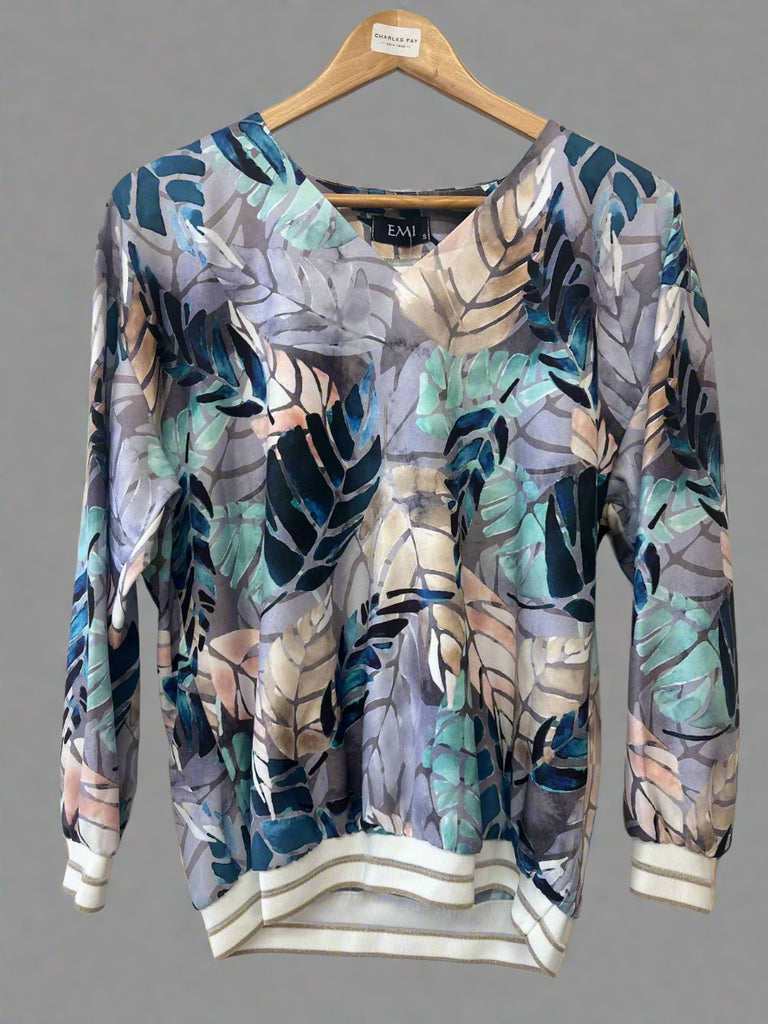 EMI Collection Ladies Loose Autumn Leaves Print Top Red