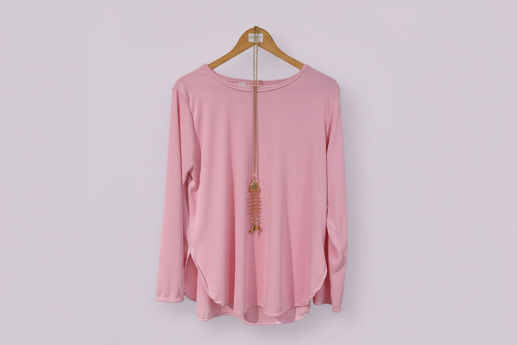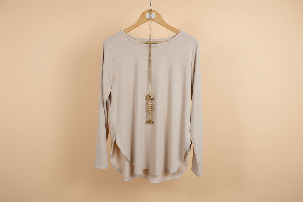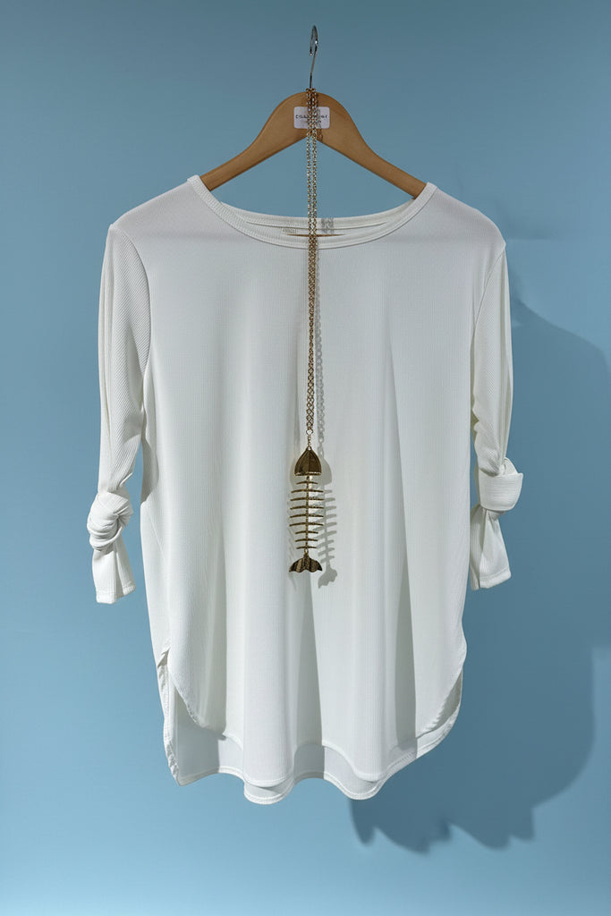Deva Moda Ribbed Round Neck Top with Gold Fish Chain DM2620