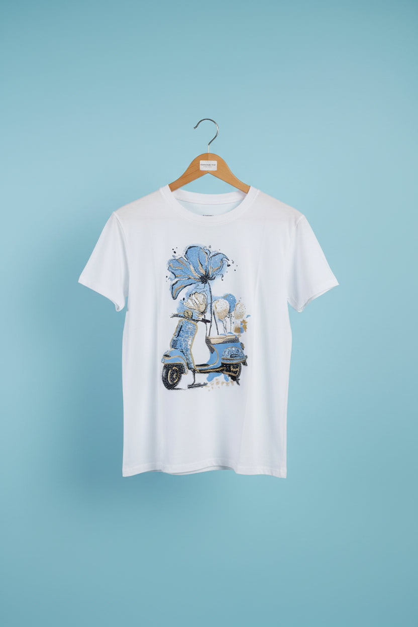 Mitica & Co Ladies One Size Print TShirt ART301B Flower Scooter