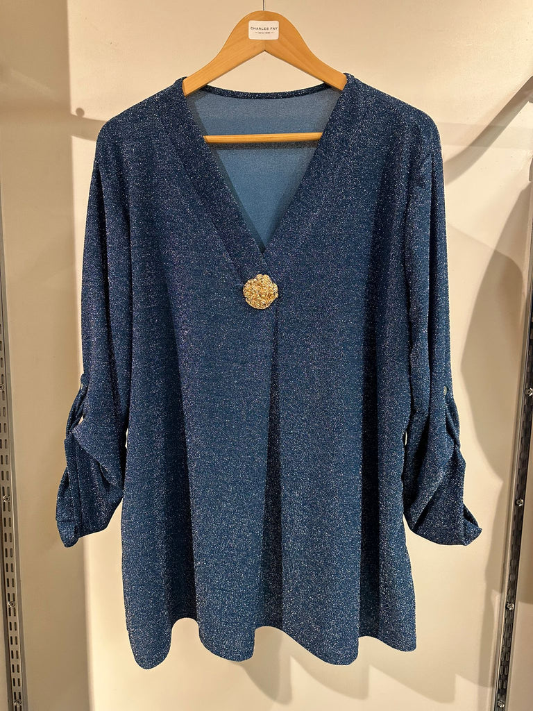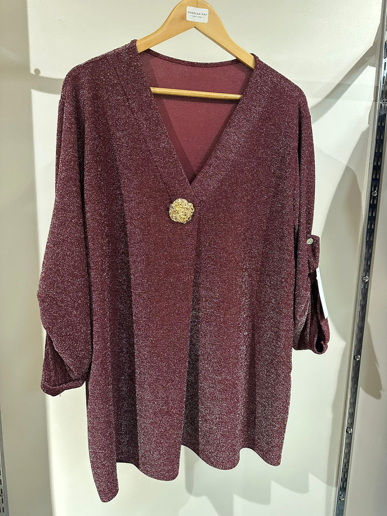 New Collection Ladies Metalic Shimmer Top with Rolled Sleeves NC30161