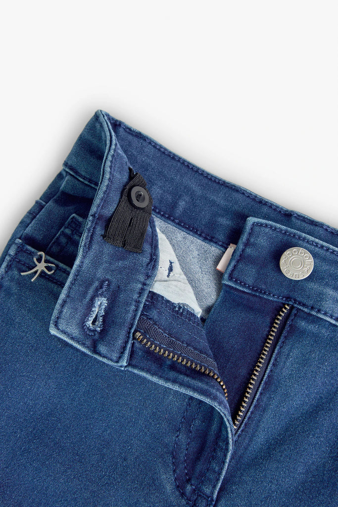 These girls' stretch denim pants are perfect for the transitional season. Their flat, stretchy fabric provides comfort and freedom of movement. They're blue with a plain, unadorned design, making them versatile enough to pair with any outfit. They feature a button closure for easy wear. They're available in sizes from 4 months to 16 years. A basic pair of pants, essential for any girl's wardrobe.