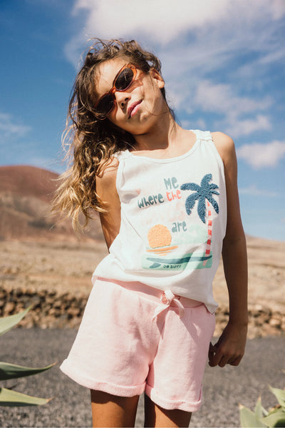 These knitted shorts for girls are a comfortable and fresh garment, ideal for warm days. They are made from a soft fabric that provides freedom of movement and comfort. Their vibrant pink colour adds a cheerful and fun touch. The design includes an adjustable drawstring at the waist, allowing for a perfect fit. They are available in sizes suitable for ages 4 to 16 years, offering a versatile option that can be easily paired with T-shirts or blouses for a fresh and casual look.