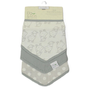 Ela & Ren Muslin Dribble Bandana Bibs 3 Pack J14026 Grey
