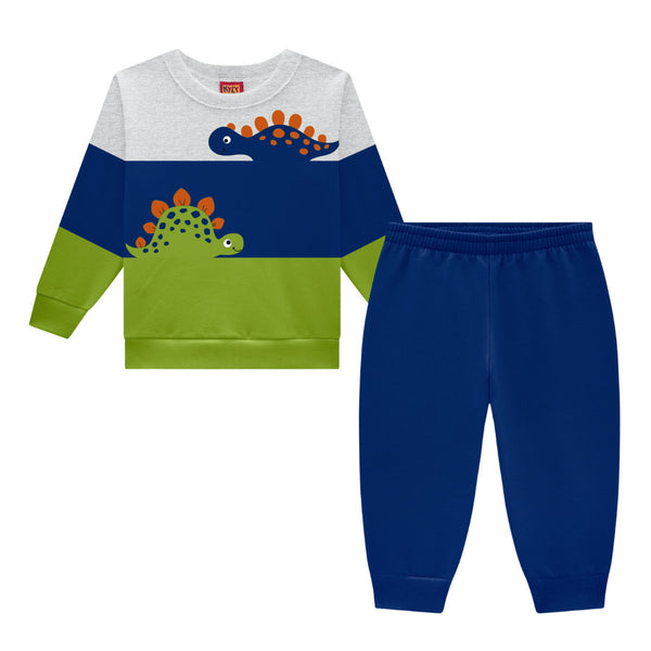 The Kyly children's set for boys is perfect for warming up cold days with lots of style and fun! The coat, made from 99% cotton and 1% polyester plush sweatshirt fabric, features a cute dinosaur print that will delight little fans of these prehistoric creatures!