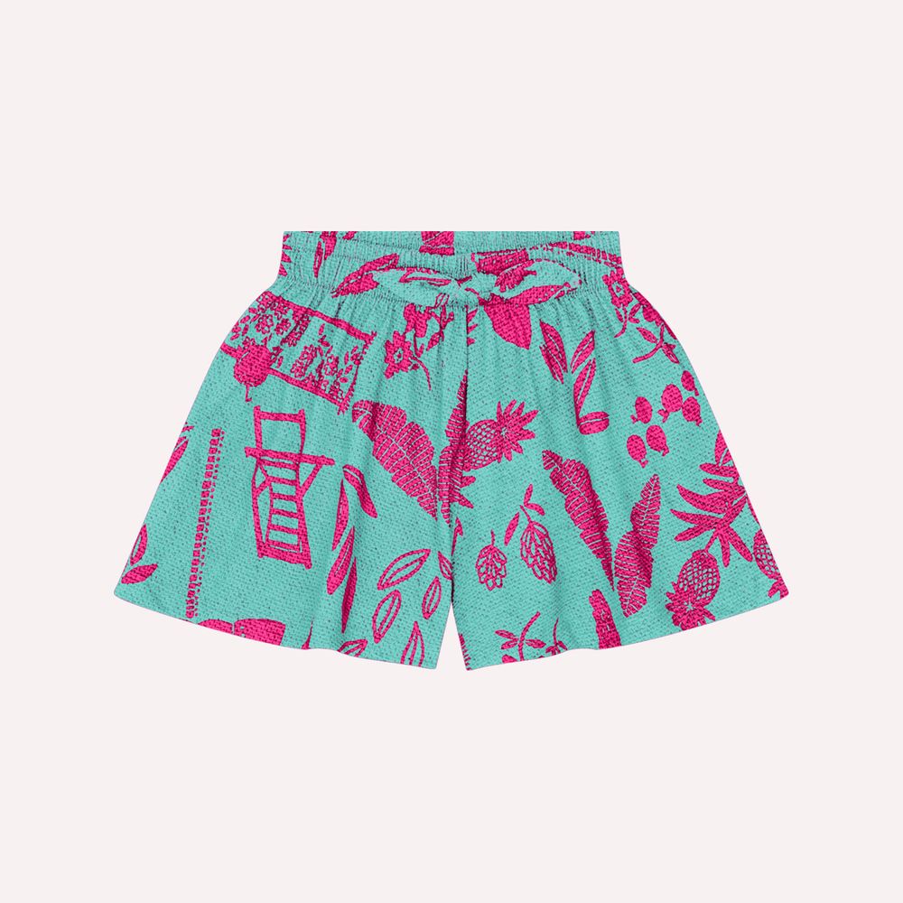 The shorts feature a rotating print, a waist with extra elastic, seamless sides and a hemmed hem, ensuring comfort and style for your little one to explore the world with lots of charm.