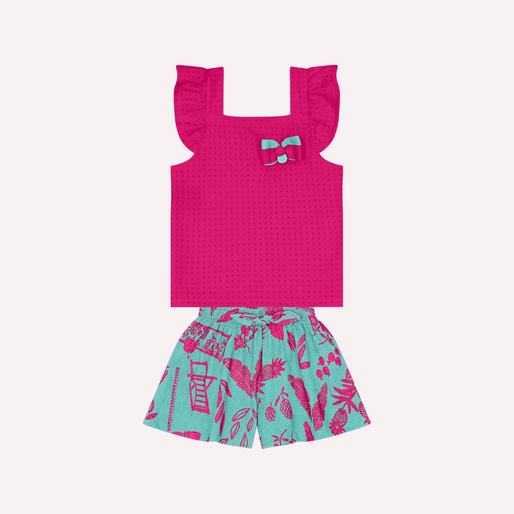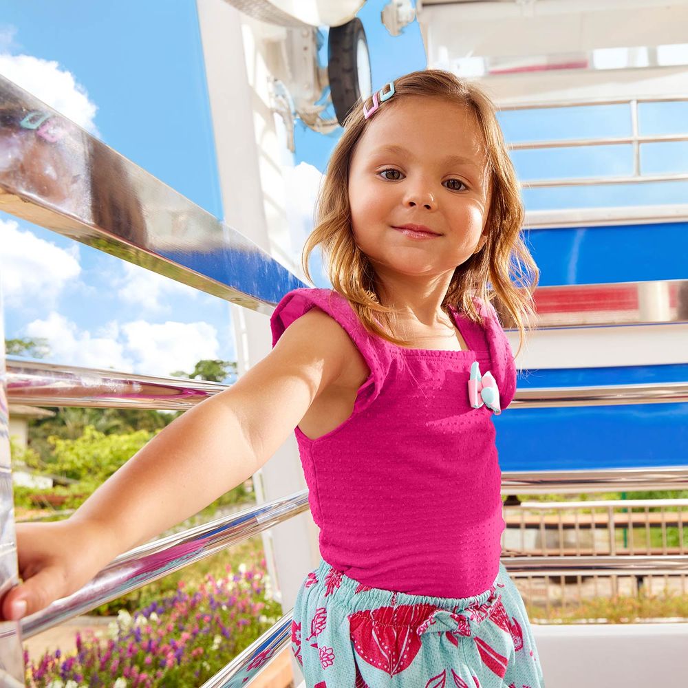 The Girl Kyly Children's Set is pure charm, consisting of a cropped tshirt in 95% cotton and 5% elastane, and 100% cotton tricoline shorts.
