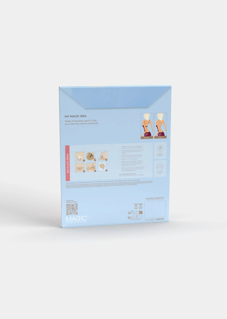 Experience effortless style and comfort with our backless, strapless adhesive bra. The soft, smooth cups create a natural, invisible look under any outfit. Thanks to innovative technology, the cups transform from flat to a molded, rounded shape for perfect support. The skin-friendly adhesive layer on the inside ensures a secure hold without irritation.