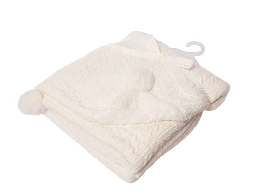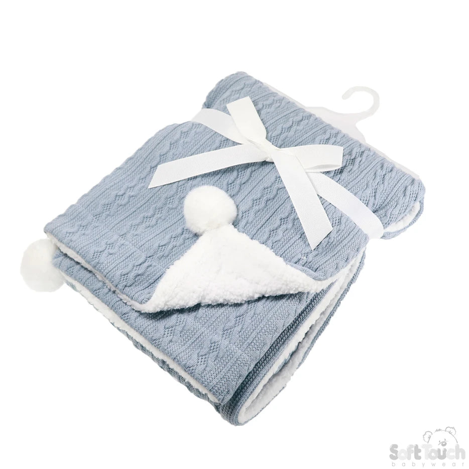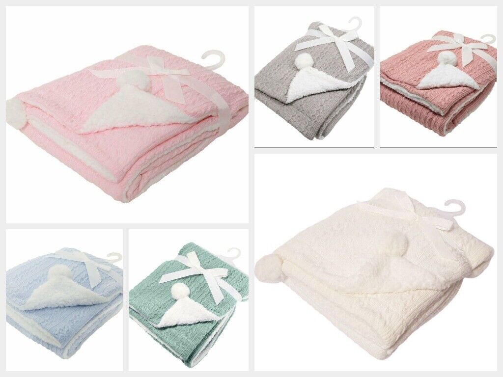 Soft Touch Cable Knit Baby Wrap with Pom Pom + Soft Sherpa Back FBP188 Various Colours