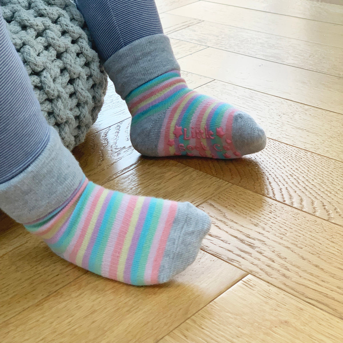 The Little Sock Co- Stay-on, Non-Slip Socks Rosey Rainbow Stripe